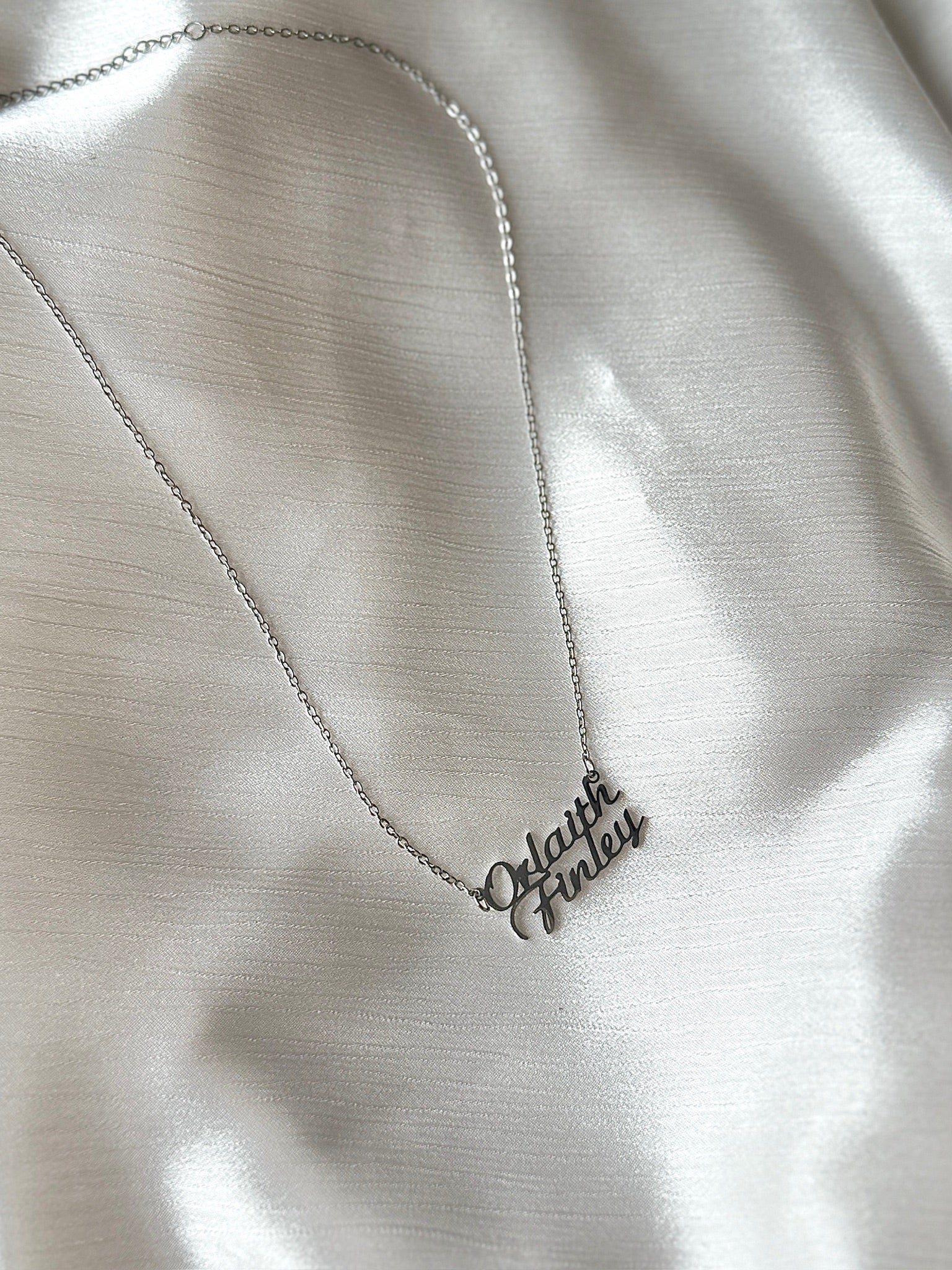 This full name sterling necklace is a beautifully personalised piece, available in silver, rose gold, and gold. Each letter of your chosen name is expertly crafted for a refined, elegant look on a matching chain, available in sizes 35 cm, 40 cm, and 45 cm. The necklace offers a touch of luxury in every finish sleek in silver, warm in rose gold, and timeless in gold making it the perfect statement piece to celebrate your unique style✨